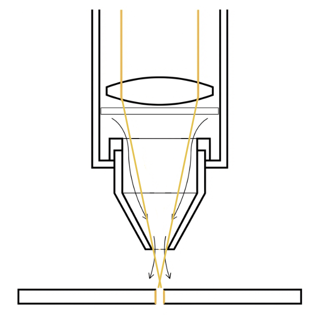 Bei Scannern ist es schwer möglich koaxial Prozessgas zuzuführen, da die kleinen Gasdüsen das Bearbeitungsfeld erheblich einschränken. Dennoch kann das genutzt werden, wenn der Scanner ausschließlich für eine Pendelbewegung des Strahls (Wobble) genutzt werden soll oder Konturen im Bereich des Düsendurchmessers bearbeitet werden sollen.