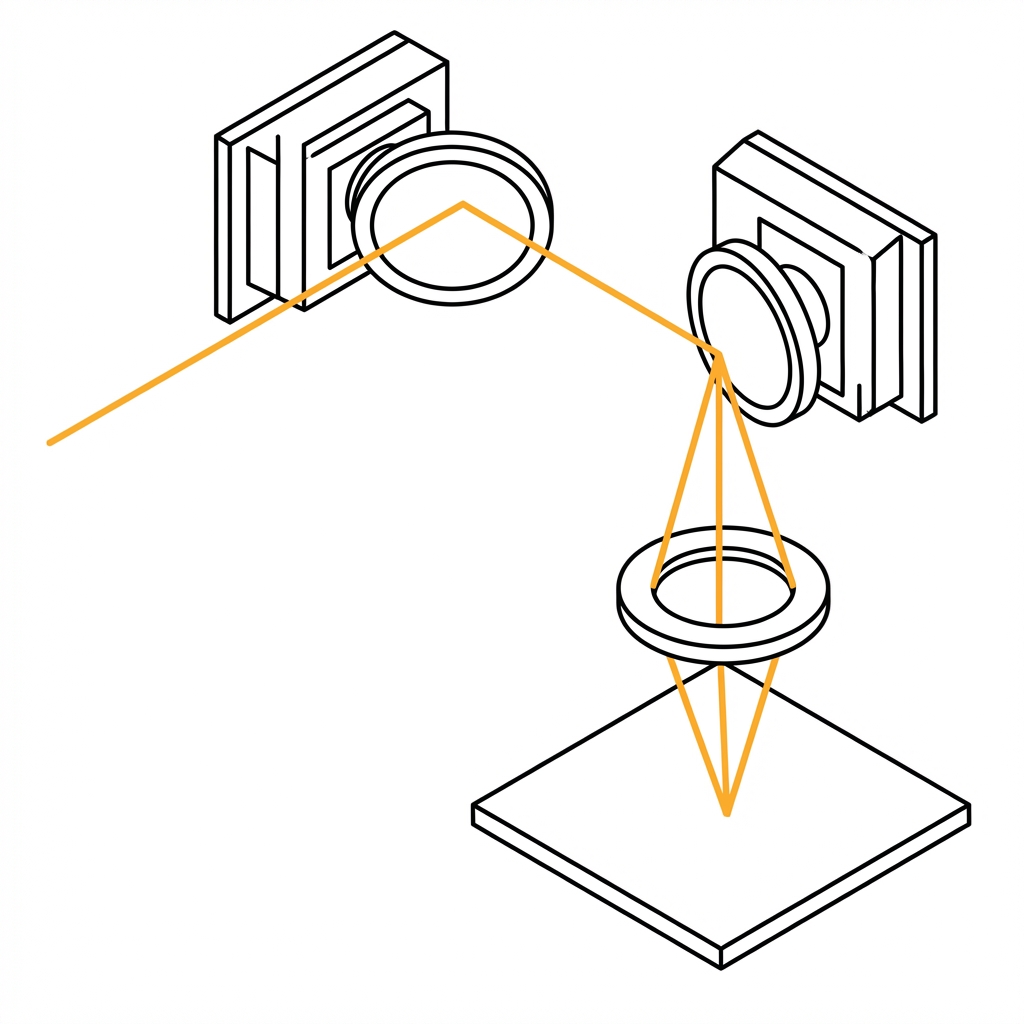 Bei Anwendungen die sehr hohe Dynamiken oder sehr komplizierte Geometrien benötigen wird oftmals der Galvanometerscanner eingesetzt. Dieser ist Aufgebaut aus zwei beweglichen Spiegeln, durch die der Strahl in unterschiedlichen Winkeln abgelenkt und anschließend durch die Fokussierlinse fokussiert wird. Die Spiegel positionieren den Strahl innerhalb des Scanfeldes. Ein Spiegel in x- und einer in y-Richtung. Es gibt auch andere Arten von Scannern, wie beispielsweise Polygonscanner oder 1-Achsscanner, aber die Galvanometerscanner sind mit großem Abstand am meisten verbreitete Scannertyp.